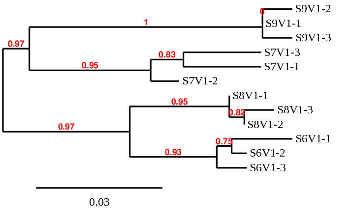 - Generate a multiple sequence alignment and distance tree for 12 of these sequences (3 clones from each of 4 subjects)