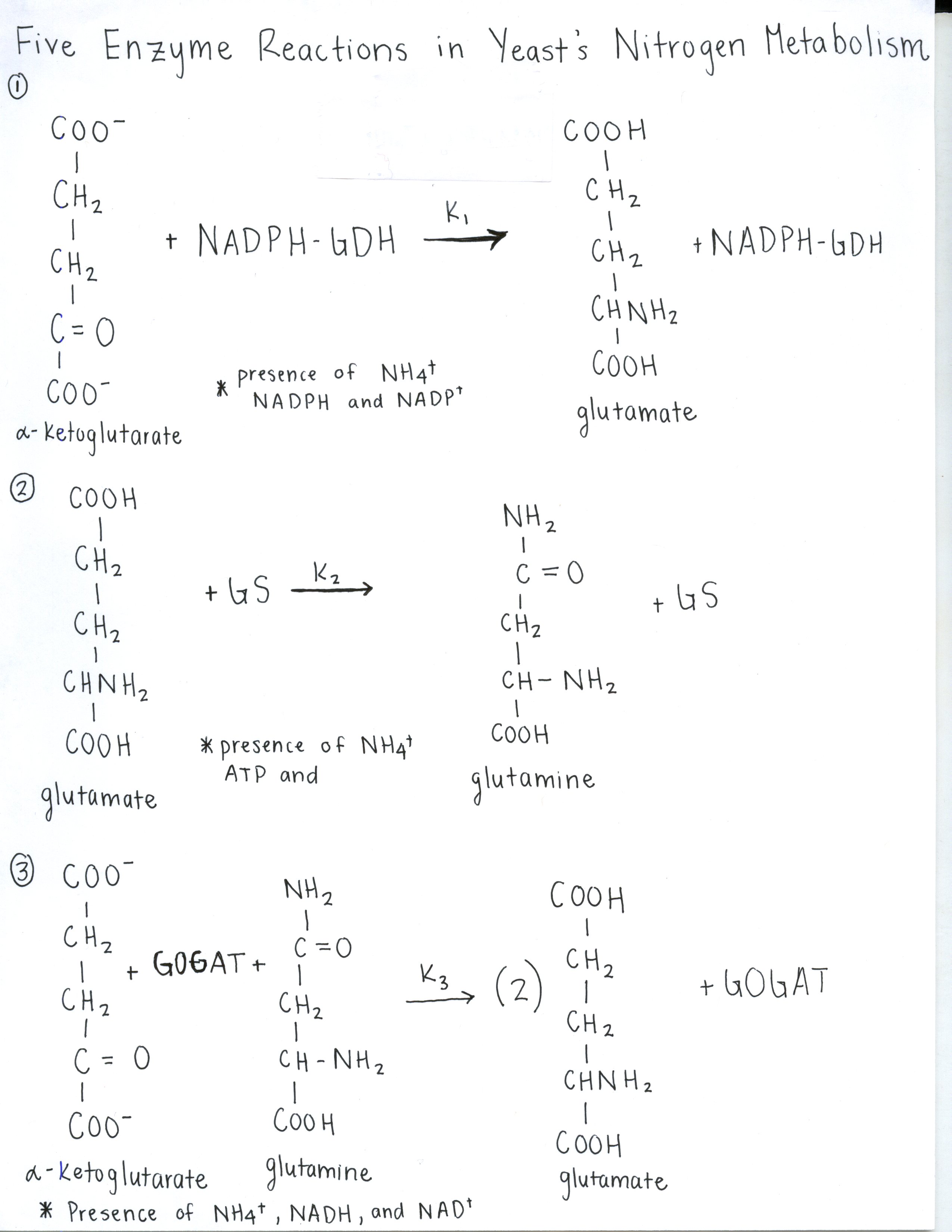 - This graph defines the five separate enzyme reactions in yeasts' nitrogen metabolism:
