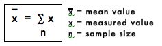 The mean value is simply the arithmetic average of all the replicate values, and is generally considered to be more accurate than any individual measured value. The mean is calculated by adding all the measured values and dividing by the number of measured values or sample size. The mean value is represented mathematically as: