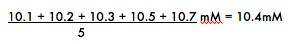 The mean of the NaCl concentrations from step #1 is calculated as follows: