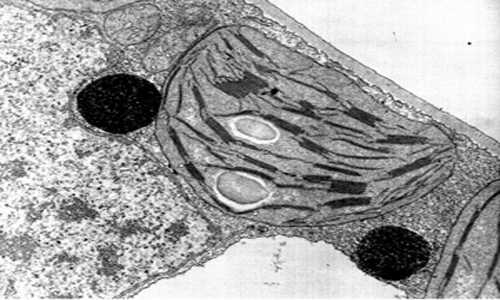 In this lab you will be studying the photosynthetic electron transport of thylakoid membranes isolated from spinach chloroplasts.  During the isolation procedure, some of the more water-soluble components that function near the terminus of the main electron transport chain are lost.  This makes it impossible to follow the production of ATP or the reduction of NADP+ in your preparations.