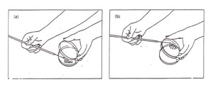 Figure A-2:  Two options for aseptic transfer into a plate. (a) Streaking a plate while holding the lid ajar.  Note that the lid shields the agar from airborne contamination:  (b) streaking a plate while holding the bottom of the plate.  Note that the agar surface faces downward, thereby minimizing contamination from the air.