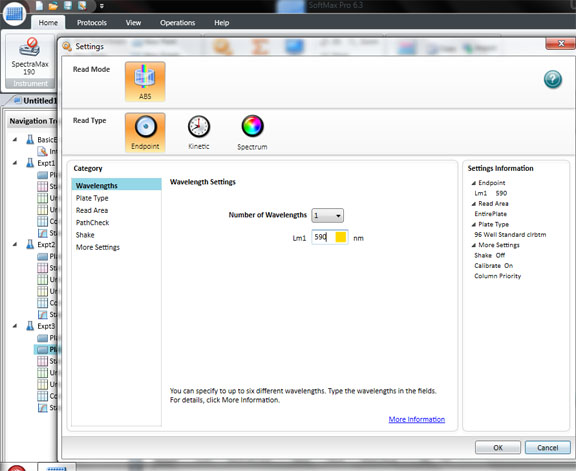 We will use the MolecularDevices SpectraMax 190 located in the lab and the SOFTmaxPRO6.3™ program.