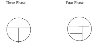 Figure A-1: Two patterns for labeling the bottom of a plate for Isolation Streak technique.  The inoculating loop is sterilized between each section and inoculum is taken from the preceeding section to an uninoculated section of the plate.