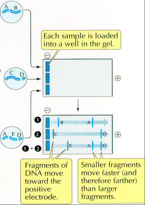 DNA is uniformly negatively charged and will,therefore, move toward the positive electrode. The separation is determined by the size or mass of the molecule or fragments of DNA.