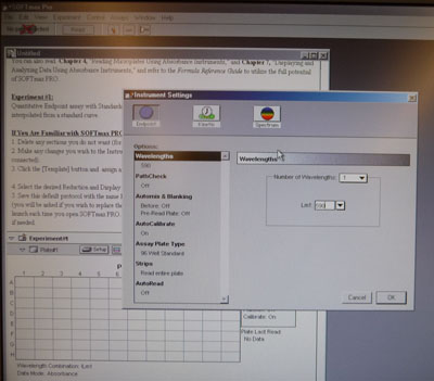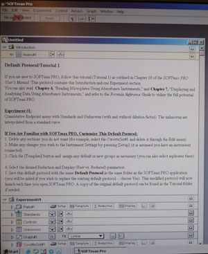 When the warm up period is over, double click on the SOFTmaxPRO4.0 shortcut on the desktop of the computer.  An “untitled” document will open on the computer screen called Default Tutorial 1.
