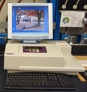 After the spectrophotometer finishes its start-up calibration, the drawer will open.  If it doesn’t close on its own, close it by pushing ONCE the “drawer” button on the face of the spectrophotometer.