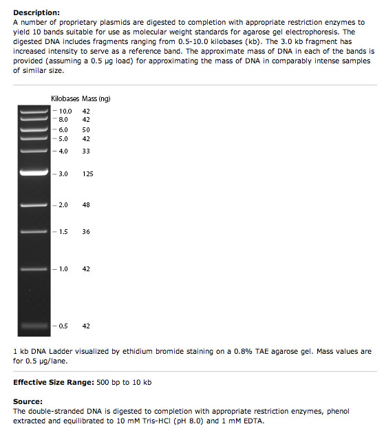 Our standards ladder is product number NEB323-2S from New England Biologicals. The manufacturer supplies the following information about the standards ladder.