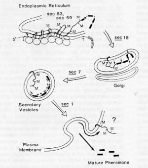 Julius, D., Schekman, P., and Thorner, J. (1984). Glycosylation and Processing of Prepro-α-Factor through the Yeast Secretory Pathway. Cell 36:309-318. (posted on lab e-reserve conference)