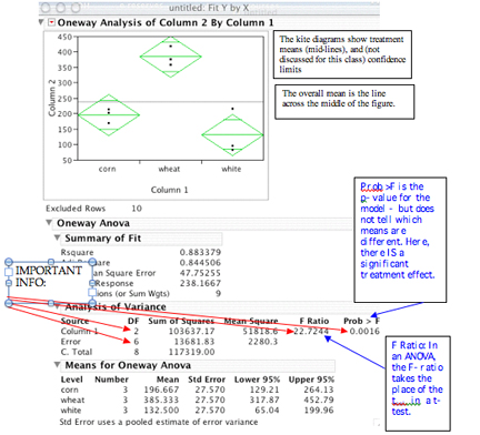 Expressing the results of a One-way ANOVA. as a table in a lab report or scientific paper: Note that in JMP the variation is expressed as both SD and SE. You need to chose which expression you will use and be consistent. (Also refer to the Science Writing Guide in this Wiki)