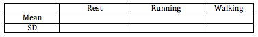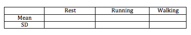 3) Calculate the means and variability (SD) of each group (rest, running, walking) using the Σ AutoSum function on the toolbar.
