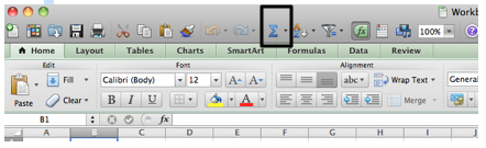 a. In the summary table, click on the empty cell in which you want the first calculated mean to be displayed. Then select “average” from the Σ AutoSum drop down menu.