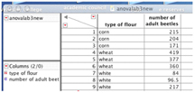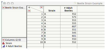 2) Now you must decide how to organize your data. In this example, there are two variables: Beetle Strain and # of Adult Beetles. Thus, you will need two separate columns.