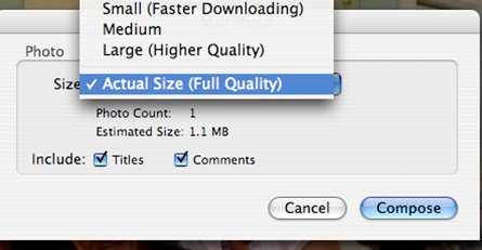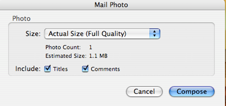 8) If the image is still too large, use the icons on the lower right. Clicking email will open this window: