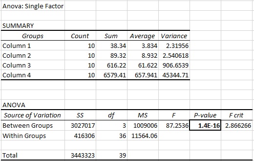 Results text and stats: How to express ANOVA stat results in the text of your report: Focus on the biology and use the statistical analysis to bolster your conclusions. (Remember, statistical tests are tools for understanding; statistical significance does not necessarily imply biological significance. In the case of a statistically significant finding, always report the size of the effect. Note that with very small sample sizes (e.g., n < 10) the power of a statistical test to detect a real effect is rather low. Oppositely, with very large sample sizes, even minor effects of little biological significance can be statistically significant! So, use caution in interpreting your results. Examine the trends in your data; even if not significant, they may point to a biologically interesting pattern that may suggest re-testing using larger sample sizes.)