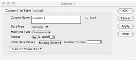 b. To label the columns and define the type of data they contain, double click directly on the ‘Column 1’ heading in the table. This will open a new window: