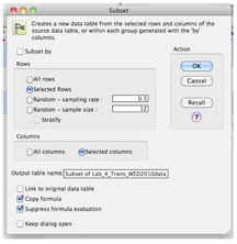 The data will be entered into JMP as below: The blue shaded cells are the plants in the light, while the unshaded are the plants in the dark conditions. To perform a one-way ANOVA you must create a subset of the data: