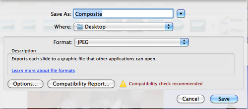 7. Group all the elements of your composite figure and Save as Picture: Go to Edit > Select all. Go to File > “Save as” a .png or .jpg file on your desktop. On a Mac you have the possibility to adjust the dots per inches (dpi) or the size of the composite picture by clicking on "Options..."