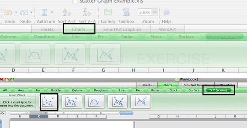 2) Highlight the cells you want to graph (time on the x axis). Select the Chart tab from the menu, and select ‘XY Scatter'.