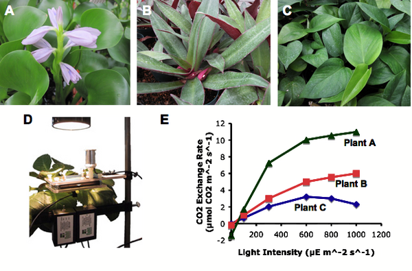 In a scientific paper composite figures provide pictorial information on the organisms studied, the methods and equipment used, and the results summarized in graphs. For example, the figure above illustrates an experiment on photosynthesis performed in different plant species using a Qubit CO2 gas analyzer.