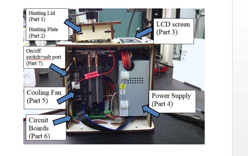OUR TEAMLAB 1 WRITE-UPInitial Machine TestingThe Original Design Experimenting With the Connections When we unplugged the LCD screen (part 3) from the circuit board(part 6), the display screen turns off and shows nothing at all. When we unplugged the white wire that connects the circuit board(part 6) to the heating plate(part 2), the temperature sensor malfunctions and displays the incorrect temperature on the LCD screen.
