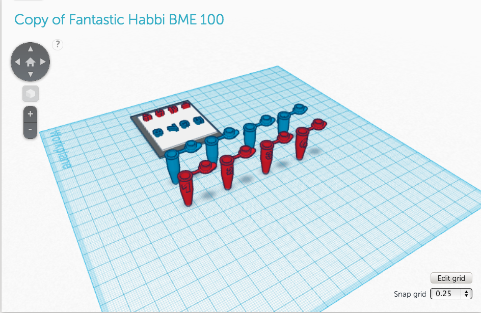LAB 6 WRITE-UPComputer-Aided DesignTinkerCAD TinkerCAD is a free online application that can be accessed through a online account. TinkerCAD is used to design different structures and display them on a screen, which can be modified to the users liking. TinkerCAD also allows you to save your designs and 3D print them through a certain software. TinkerCAD was used to redesign the micro tubes; the tubes were labeled and given different colors (red,blue) to help differentiate between each tubes content.