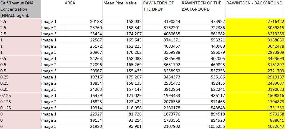 Image J Values for All Samples | ||||||||||||||||||||||||||||||||||