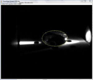 A timer setting was used to create as light-secure setting as possible. Three photos were taken and analyzed wit ImageJ.