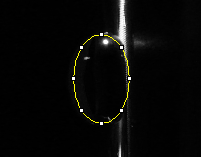 Move the slide until the droplet is directly in line with the blue light beam (if not so already).
