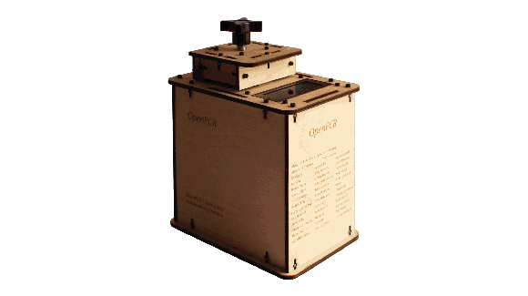 The OpenPCR machine runs PCR reactions and can be monitored by a computer to which the machine can be connected with a USB 2.0 cable. The machine has a heated lid which prevents condensation on the caps of the PCR tubes. If this part did not work, water would condensate on the cap and cause the salt concentration to be too high for the polymerase to function properly. The heated lid is situated over the 16 tube PCR block, which holds and heats the samples in the PCR tubes. If the block did not work, the samples would not be heated to the necessary temperatures and there would not be a PCR reaction. Information about the reaction is displayed on the screen located on top of the box. Inside the box there are the heating components for the PCR block. These heating components go to a heat sink which leads into an air filter which a fan moves air through so as to keep the temperature within the box from getting too hot and the unit from overheating. The wiring for the PCR block, the cooling system, and the display are all hooked to a motherboard situated at the bottom of the box. The motherboard controls the temperature through a connection to the PCR block and runs the OpenPCR machine.