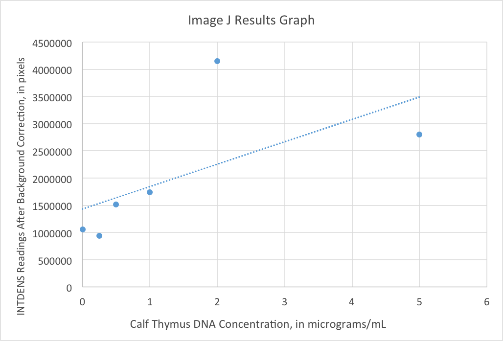 This is our sample shown on Image J with 2.5 micrograms/mL of DNA added.