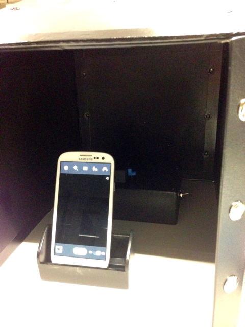 Place smartphone in cradle so that the lens is set up straight in front of the drop on the slide. Measure the distance between the phone and the drop with a ruler and place the dark box over the system. Phone was placed in level with the height of the drop, in order to get a more clearer picture of the drop and the fluorescence. If needed, place a pencil or small object on the stand without interfering with the phone in order to keep the stand steady and immovable. Set the camera on the phone, and place a timer on the camera for the best results, as this helps eliminate any light that may enter in the box. Close the lid and block out as much light as possible for the best picture. If needed, take multiple pictures until the best one is taken. Record the pictures with proper amount of concentration of SYBR Green Dye.