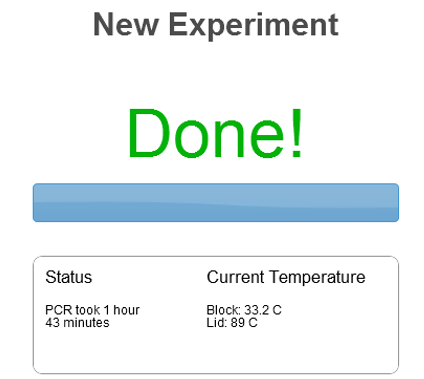 LAB 1 WRITE-UPInitial Machine TestingThe machine in the picture is known as an OpenPCR machine. Although this machine seems to be nothing more than a wooden box, it is actually a mechanism that is used to amplify target sequences of DNA by continuously heating and cooling the DNA to extreme temperatures. The process that occurs in this machine is known as PCR which is short for Polymerase Chain Reaction. In this process, the extreme temperatures that the DNA is exposed to causes the DNA to unwind, separate into two different strands and are used to make multiple copies of the target sequence of DNA.