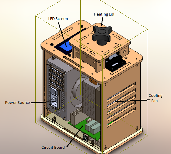 OUR TEAMLAB 1 WRITE-UPInitial Machine TestingThe Original Design of the PCR machine The device displayed in this image is an Open PCR machine which is a machine that conducts a polymerase chain reaction which in turn is a reaction that amplifies a given piece of DNA, or in other words makes many more copies of it. This is done inside the machine through a multi-step heating and cooling process the first of which is to heat the DNA in order to have it split apart from the two helix form into individual chains. Here primers, small strands of nucleotides, inside the reaction mixture attach to the ends of the individual DNA chain. Then when cooling begins to happen the polymerase, an enzyme, in the reaction mixture attaches to the ends of the primers and begins replicating the individual chains of DNA that it's attached to using floating nucleotides in the reaction mixture. Finally, the new DNA chains made as copies fuse together as do all the DNA chains present. This represents just one cycle of many taken to produce a multitude of copies of the DNA that is being amplified. This whole process takes place inside an area called the thermal block that holds tubes with the reaction mixtures which are heated and cooled according to the process. A lid on top of this area prevents condensation of the water of the reaction mixture. Another feature of this machine is its ability to interface with a computer via a USB cable which allows the monitoring of the machine's progress through cycles like the aforementioned one on the computer. However, if one wishes to view this information directly on the machine this is also possible due to the attached LCD screen.