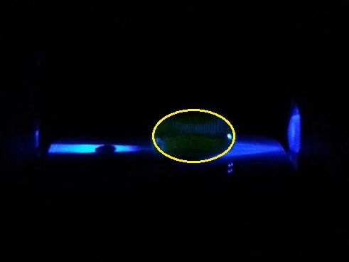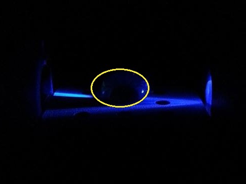 A glass slide was properly placed with the smooth side down onto the fluorimeter. The first row of the circles is placed in alignment with the blue light of the fluorimeter.