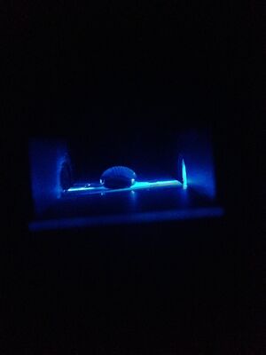 3. To take a picture of the drop from sideways use the plastic trays to adjust the height of the fluorimeter after placing the smart phone on the cradle at a right angle from the slide. It can be helpful by filtering the blue light while using ImageJ.