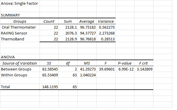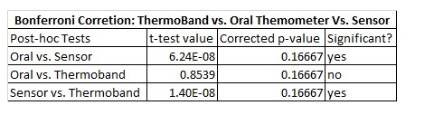 The data above shows that the "ThermoBand" is more accurate (in comparison to a thermometer) than the competing brands.