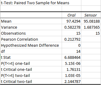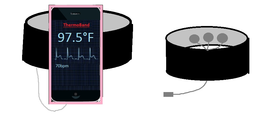Summary/DiscussionThis product is inaccurate in its readings when compared to those of an oral thermometer. As shown by the t-test, the t-value is far lower than the standard measure of p>0.05, which means that there is a statistically significant difference between the oral thermometer readings and those of the tested device. Reasons for this could be experimental error, but is more likely due to several key design flaws. The first major design flaw was that the sensor needed to be constantly readjusted and reattached, which could have easily been solved by creating an armband or some such support structure that would keep the sensor in place. A second flaw is that this device has an apparent maximum temperature reading, which is far below that of the average human body. This flaw is more of an error in production or creation of the device. The third and final flaw is the consistency in which the device read temperatures. Our subject went through several different stages of motion such as walking, jogging, stair-climbing, and sitting in a chair, yet the device read the same temperature in all stages. This flaw leads to a conclusion that the device is very reliable, but is not accurate when compared to the conventional oral thermometers. LAB 3B WRITE-UPTarget Population and NeedThe "ThermoBand" temperature-recording device targets athletes/active people in need of an easy way to measure their body temperature. We want to help athletes take care of their bodies by providing them with accurate body temperature data while they're performing various physical activities including running, lifting, cycling, etc. Most body temperature sensors are big, inaccurate, inconvenient and require their own personal device. With our '"ThermoBand", taking and recording temperature will be easier and more accurate than ever.