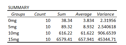 LAB 2 WRITE-UPDescriptive StatisticsExperiment 1: LPS Dosages in Humans The table above left shows the statistics of how certain dosages of lipopolysaccharide affect the production of inflammation. In the table above right, we used the ANOVA test to analyze our data from more than 2 groups and to establish a p value. We need this to later determine if the data is significant and if the dosage amount has an effect. Experiment 2: LPS Dosages in Rats The table above contains the T-Test run to compare the results of two different dosages of LPS.