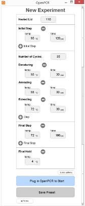 The Open PCR machine (left) is an inexpensive thermocycler for DNA replication. A thermocycler is a device that heats and cools a sample set to specific temperatures for a specific amount of time, in a specific sequence. This allows for repeated automated doubling of the DNA sample, freeing the researcher to attend to other responsibilities. As shown, it plugs directly into a computer via USB to allow the monitoring of the process in real time.