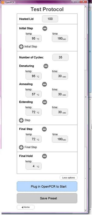 Below is a screen shot of the correct OpenPCR program set to the correct parameters and ready to run: