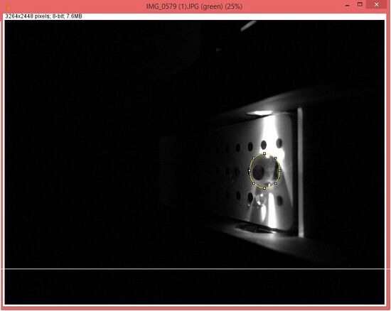 Flourometer Sample with No DNA (0 μg/mL) Loaded into ImageJ, Green Portion with Droplet Selected