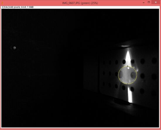 Flourometer Sample with Positive DNA (2.5 μg/mL) Loaded into ImageJ, Green Portion with Droplet Selected