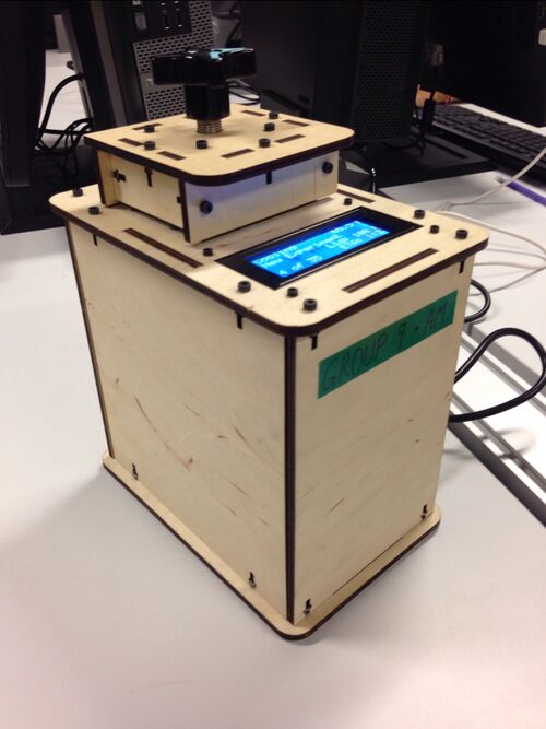 Feature 4: Fluorimeter HardwareThe Fluorimeter will be packaged in the box that will be used to block out the light when actually using the device. The main purpose of this is for easy storage. The package will include in it the actual Fluorimeter, a detachable adjustable stand, a cell phone stand, and five hydrophobic slides. The device will also come with the charged battery in it for consumer convenience. The biggest variable that can cause error when using the Fluorimeter is the camera angle. Since there are multiple phones out there with different placements of their cameras, the results could be altered based on the angle the camera makes with the Fluorimeter. To ensure this doesn't happen, the new Fluorimeter will have an adjustable stand on the bottom to raise or lower the height of the actual hardware to fit the cell phone's camera height. This allows for any camera to have a perfectly level view with the drop and the blue light, which will give accurate results.