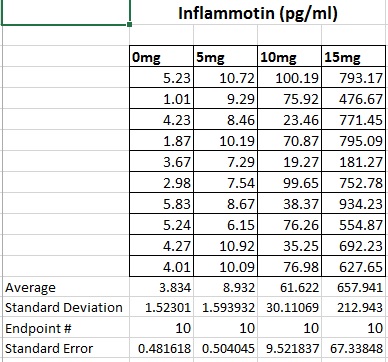 Table 1: Effects of Variable Dosage on Inflammotin Production in Rats