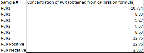Below is a graph of the calibration curve, which will be used to calculate the final concentration for each PCR sample.