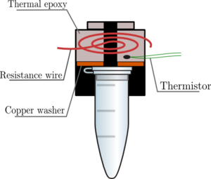 1. Gather all materials required for the PCR. 2. The strip of eight empty PCR tubes must be cut in half in order to leave two strips of four tubes are available. 3. Label the sides of the empty tubes with the labels from the above mentioned table. Use “p” for “+” and “n” for “-“. 4. Place the two strips of four tubes in a test rack. 5. Starting with the positive control, transplant 50 μL of the PCR reaction into the empty tube. Use appropriate pipetting strategies then dispose the tip of the pipet. 6. Transfer 50 μL of the positive control/DNA primer mix with a brand new pipet tip into the same positive control tube. The total volume of the tube should be 100 μL. 7. The same steps must be followed for the negative control with the negative control/DNA primer mix instead. 8. Patient 1 reproduces 1, 2, 3 and Patient 2 reproduces 1, 2, 3. Replace the control DNA primer mix with the correct patient DNA primer mix. 9. All of the eight tubes must have 100 μL of the PCR reaction in each tube. 10. Make sure all lids are tightly closed. 11. Use the PCR machine, place the tube into the slots in the heating block with the sixteen slots fully turned on with the machine. OpenPCR program HEATED LID: 100°C N/A. Spring 11:QRT-PCR. Digital Image. measure.mit.edu. mit.edu. N/A. Web. 10/27/14.