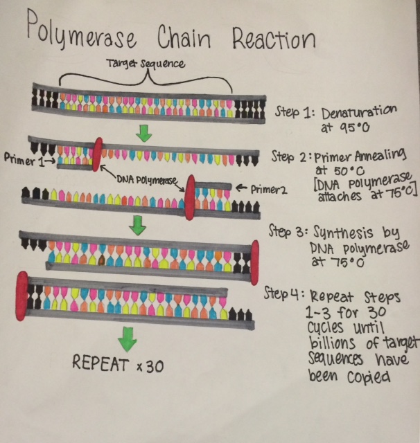 Research and DevelopmentPCR - The Underlying Technology Template DNA is the original strand of DNA used to make copies. Primers are short pieces of DNA that are customized so they can have any sequence of nucleotides. 2 primers are made to match the sequence of DNA that is being copied. Taq Polymerase is an enzyme used in the PCR reaction that acts like a machine and matches the nucleotides with the DNA code making copies. At 95 degrees celsius the DNA double helix is separated into 2 single stranded DNA molecules. It is then cooled down to 50 degrees celsius where the primers work their way in and lock onto their target strands before the strands can reconnect. It is then heated again to 72 degrees celsius where the DNA polymerase are activated and they locate a primer attached to a single DNA stand where it begins to add complementary nucleotides onto the strand. This always occurs when a DNA polymerase molecule hits a primer that is base paired to a longer piece of DNA.