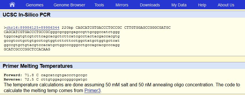To find the DNA sequence of the SNP we used the GeneView tab on the SCBI website. Our first step was to identify the mutation we found this to be the sequence CGG changing to TGG. Next, we found the non-diseased forward primer by locating the initial position of 89919736 and reading the nucleotides from 5’ to 3’. To obtain the diseased forward primer the CGG allele had to be identified in the non-diseased forward primer then substituted with the TGG allele. Next we found the non-diseased reverse primer by adding 200 to our initial position then recording the sequence from 3’ to 5’. Then we located the CGG allele in the non-disease reverse primer and again replaced it with TGG. When we used the UCSC in-silico PCR program to check our results. We came up with a result of 220 bp for the non-diseased primers. For the diseased primers there was no match. This is most likely because the entire mutation in captured in the diseased forward primer. This wasn’t a problem when checking the non-diseased primers because there was no mutation in neither the reverse nor the forward primers. | ||||||||||||||||||||||||||||||||||