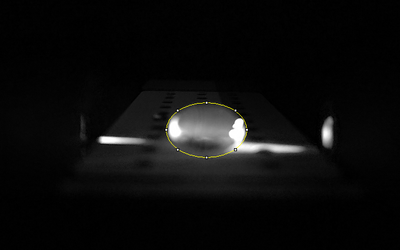 Adjust the slide so that the center of the drop is lit up by the light in the fluorimeter.